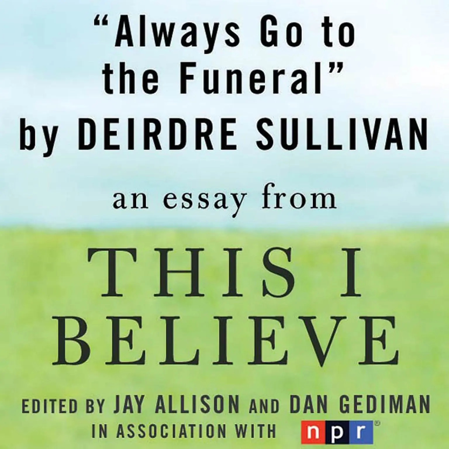 Deidre Sullivan describes the lessons she learned from her father's advice to "Always Go To The Funeral" for NPR’s This I Believe series. This I Believe is a National Public Radio program that features Americans, from the famous to the unknown, completing the thought that begins with the series title. The pieces that make up the program compel listeners to re-think not only what and how they have arrived at their own personal beliefs, but also the extent to which they share them with others. Featuring a star-studded list of contributors that includes John McCain, Isabel Allende, and Colin Powell, as well as pieces from the original 1950's series including Helen Keller and Jackie Robinson, the This I Believe book collection also contains essays by a Brooklyn lawyer, a woman who sells yellow pages advertising in Fort Worth, TX and a man who serves on the state of Rhode Island's parole board. The result is a stirring, funny and always provocative trip inside the minds and hearts of a diverse group of Americans whose beliefs, and the incredibly varied ways in which they choose to express them, reveal the American spirit at its best. This short audio essay is an excerpt from the audiobook edition of NPR's This I Believe anthology.