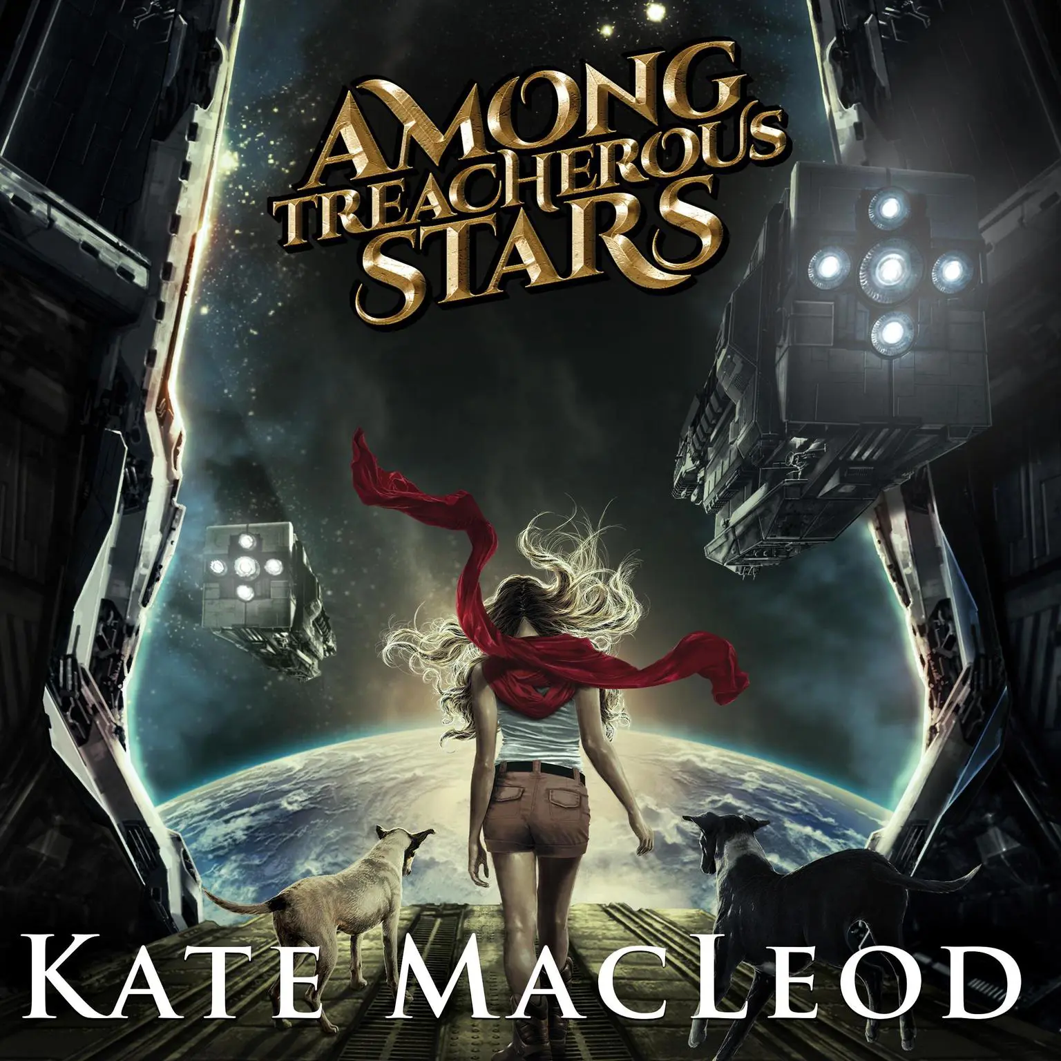 “Among Treacherous Stars” the third book in “The Travels of Scout Shannon” series, a young adult science fiction novel for fans of plucky heroines, girl spies conspiring in political intrigues, and loyal dog sidekicks.