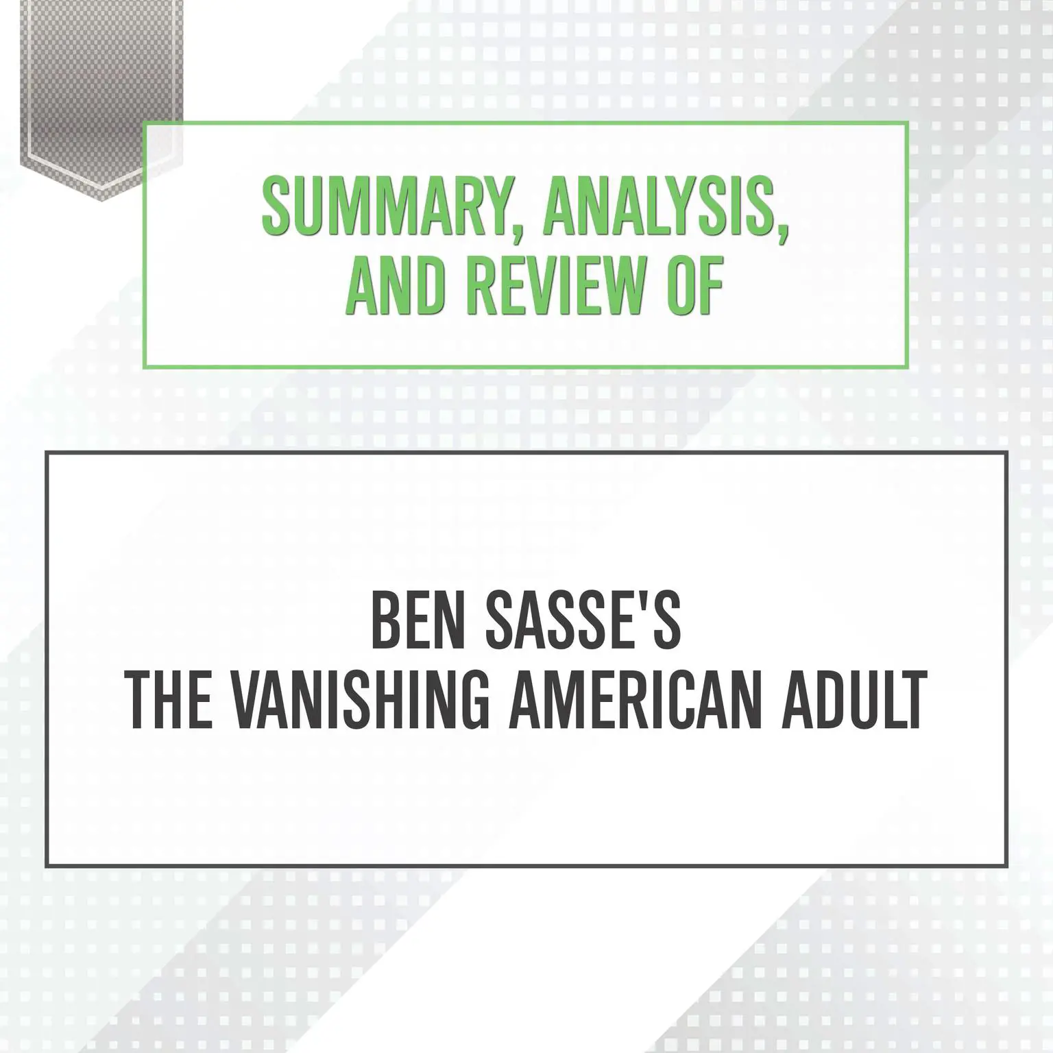 Summary, Analysis, and Review of Ben Sasse's The Vanishing American Adult PLEASE NOTE: This is a key takeaways and analysis of the book and NOT the original book. Start Publishing Notes' Summary, Analysis, and Review of Ben Sasse's The Vanishing American Adult: Our Coming-of-Age Crisis?and How to Rebuild a Culture of Self-Reliance includes a summary of the book, review, analysis & key takeaways, and detailed About the Author section. PREVIEW: Ben Sasse, the junior United States Senator from Nebraska, is widely considered a rising star in the Republican Party. Sasse, who studied at Harvard and Oxford and later received a Ph.D. in History from Yale, also numbers among that party's most prominent intellectuals. However, he claims at the outset that The Vanishing American Adult is a nonpartisan book: he is diagnosing and attempting to solve a problem that affects both Democrats and Republicans alike, since a lack of self-reliance among young people threatens the future of the whole country. While serving