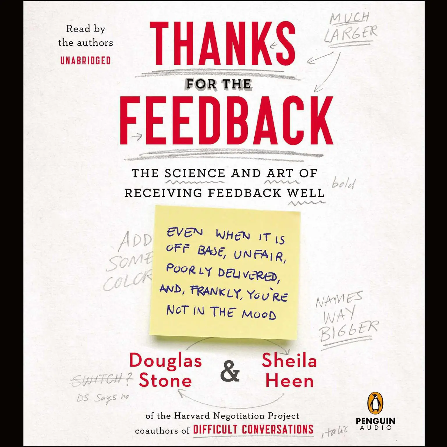 The coauthors of the New York Times–bestselling Difficult Conversations take on the toughest topic of all: how we see ourselves Douglas Stone and Sheila Heen have spent the past fifteen years working with corporations, nonprofits, governments, and families to determine what helps us learn and what gets in our way. In Thanks for the Feedback, they explain why receiving feedback is so crucial yet so challenging, offering a simple framework and powerful tools to help us take on life’s blizzard of offhand comments, annual evaluations, and unsolicited input with curiosity and grace. They blend the latest insights from neuroscience and psychology with practical, hard-headed advice. Thanks for the Feedback is destined to become a classic in the fields of leadership, organizational behavior, and education.