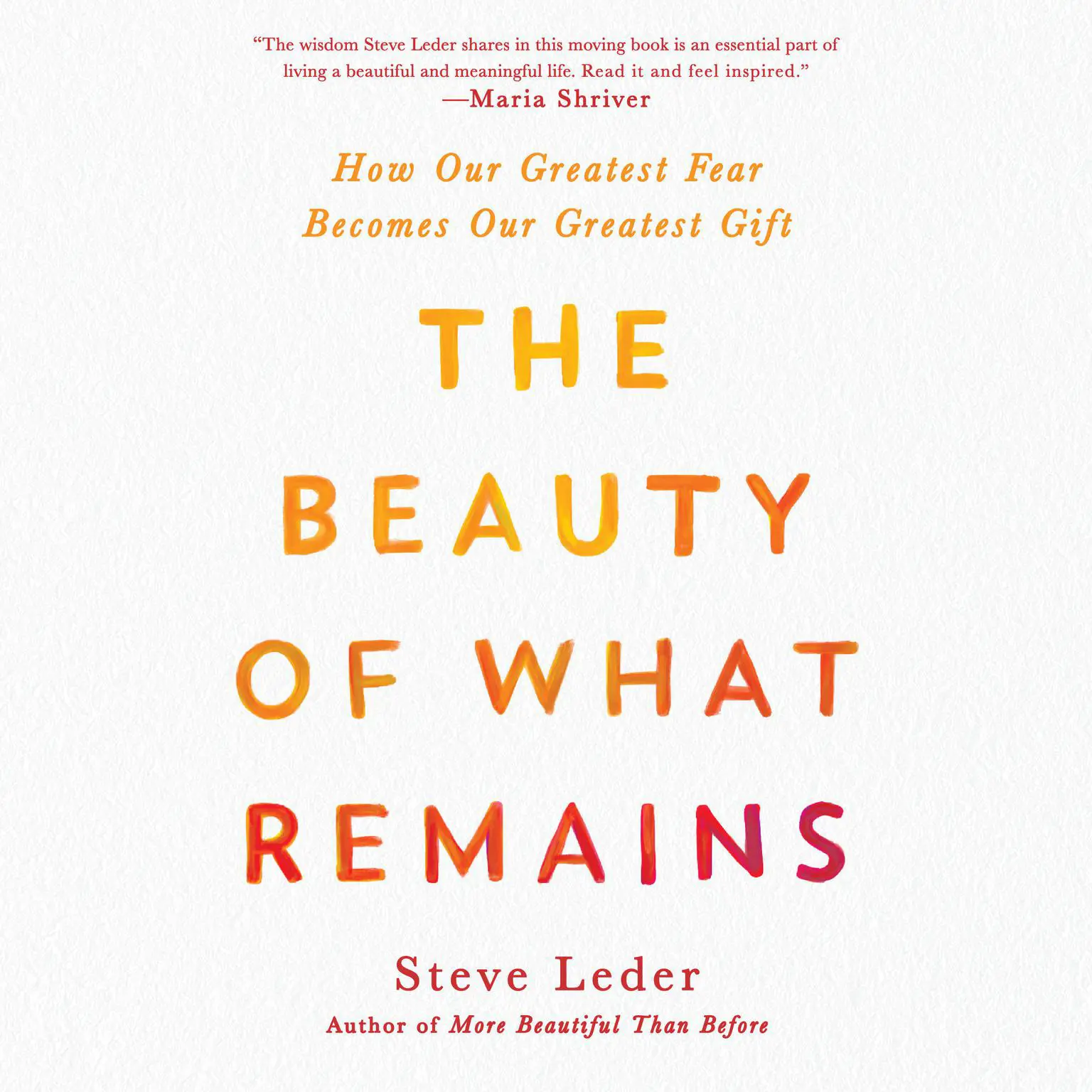 Steve Leder's words are a balm to the soul. The Beauty of What Remains encourages us to confront our feelings about death head-on, and reminds us not to fear the end of life on Earth, but to embrace what it can teach us while we're here. Steve's own stories and experiences are written in that exquisite way that makes it feel as if you're speaking to a good friend. This book is a must-read.