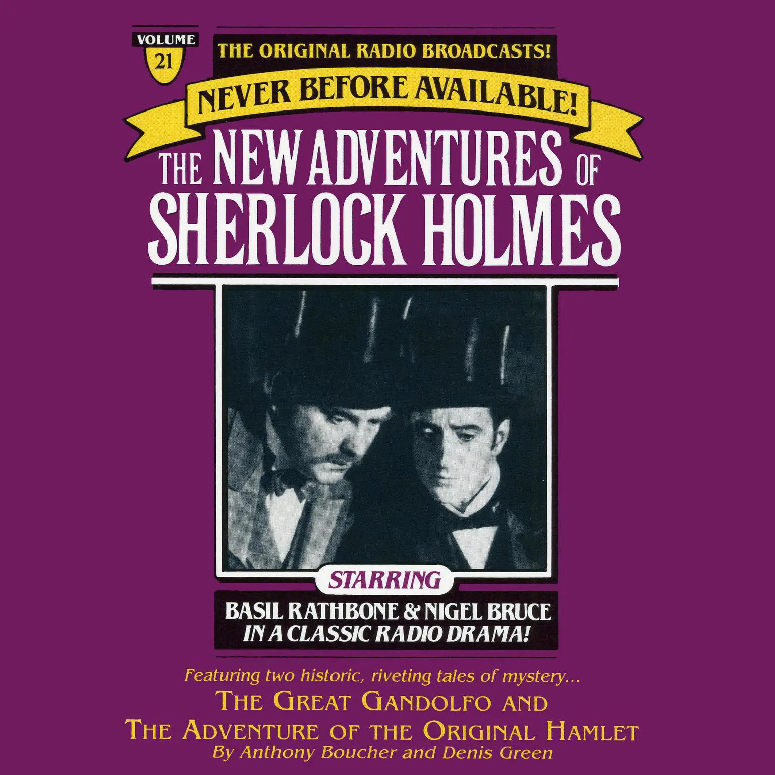 Basil Rathbone and Nigel Bruce reprise their roles as Sherlock Holmes and Dr. Watson in two radio mysteries: "The Great Gandolfo" and "The Adventure of the Original Hamlet."