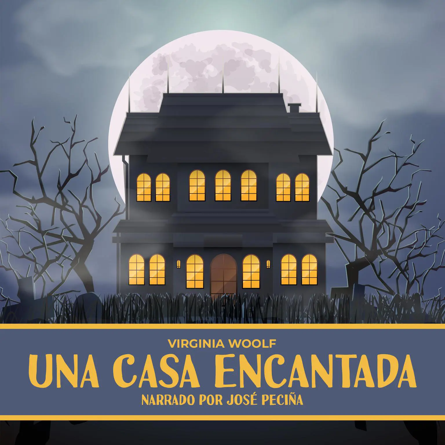 Una casa encantada se centra en la historia de dos parejas que comparten la misma casa, con la peculiaridad de que una de ellas es un matrimonio de espectros. El relato es muy breve, pero es suficiente para que Virginia Woolf comience a experimentar en sus teorías narrativas. Virgina Woolf fue hija del crítico literario, periodista e historiador de literatura inglés, Leslie Stephen, se casó con Leonard Woolf con quien fundó la editorial Hogarth Press y formó parte del famoso grupo de Bloomsbury que incluía grandes escritores y artistas como Lytton Strachey, Roger Fry, David Garnett, el economista J. M. Keynes y E. M. Forster, a quien debemos el formidable aspecto de la novela. Este audiolibro cuenta, además de la narración, con diferentes efectos de sonido y canciones, utilizando una edición cuidada, llena de estímulos, para introducirte en esta fascinante historia de la manera más original, elegante y cautivadora posible.